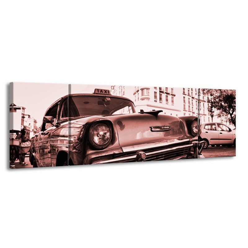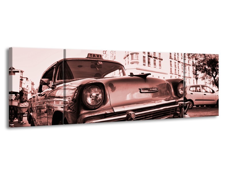 Glasschilderij Auto, Oldtimer | Bruin, Rood | 170x50cm 3Luik
