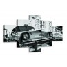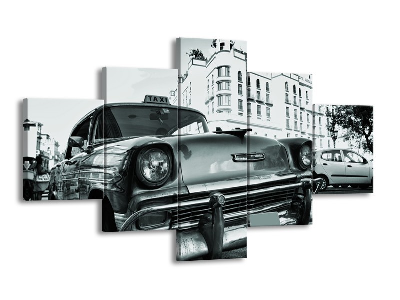 Glasschilderij Auto, Oldtimer | Grijs, Groen, Wit | 125x70cm 5Luik