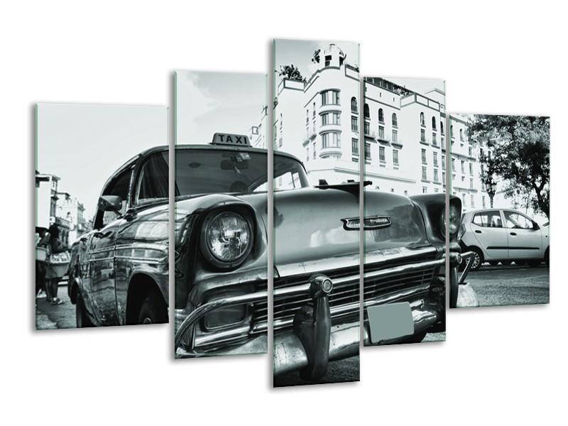 Glasschilderij Auto, Oldtimer | Grijs, Groen, Wit | 170x100cm 5Luik