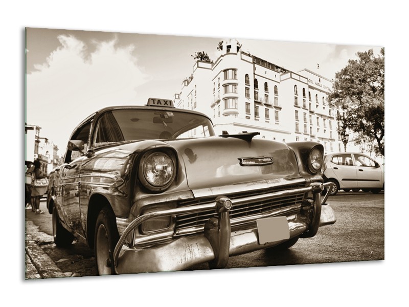 Glasschilderij Auto, Oldtimer | Sepia | 120x70cm 1Luik