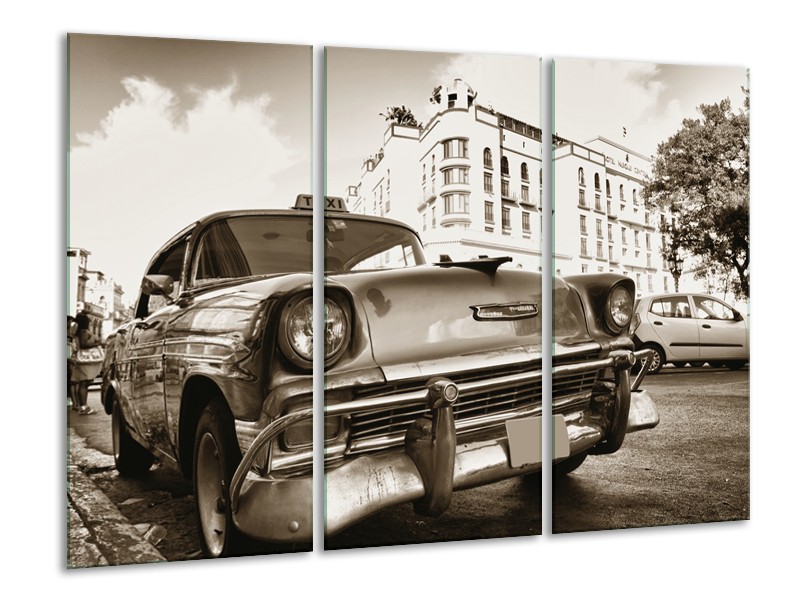 Glasschilderij Auto, Oldtimer | Sepia | 120x80cm 3Luik