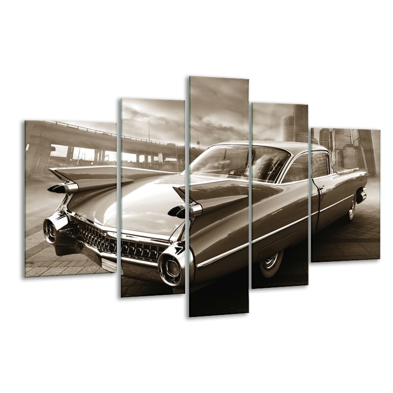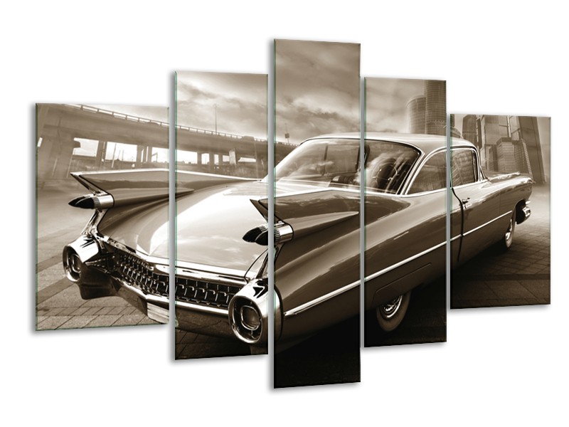 Glasschilderij Auto, Oldtimer | Sepia | 170x100cm 5Luik