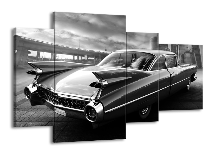 Glasschilderij Auto, Oldtimer | Zwart, Grijs | 120x75cm 4Luik