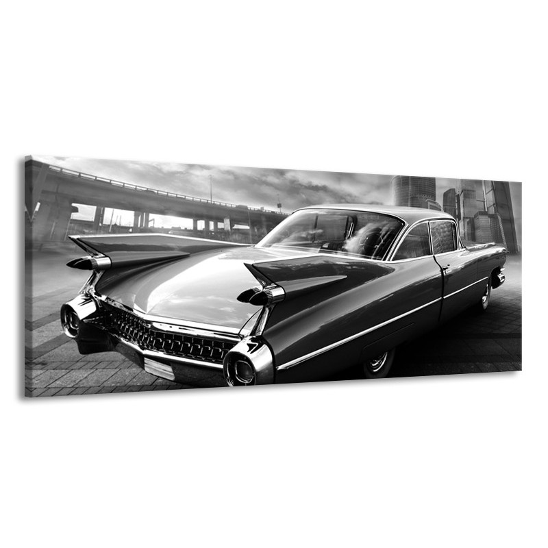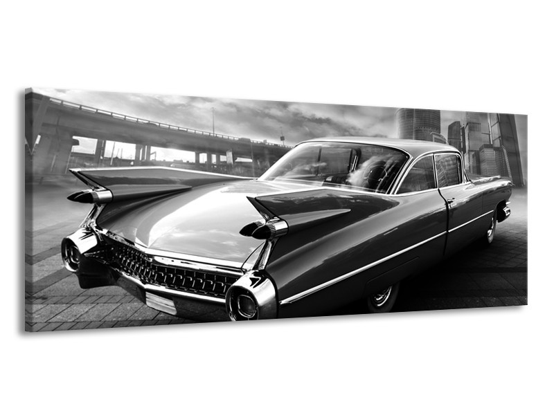 Glasschilderij Auto, Oldtimer | Zwart, Grijs | 145x58cm 1Luik