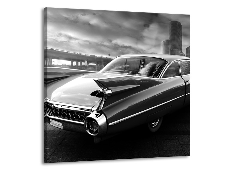 Glasschilderij Auto, Oldtimer | Zwart, Grijs | 70x70cm 1Luik