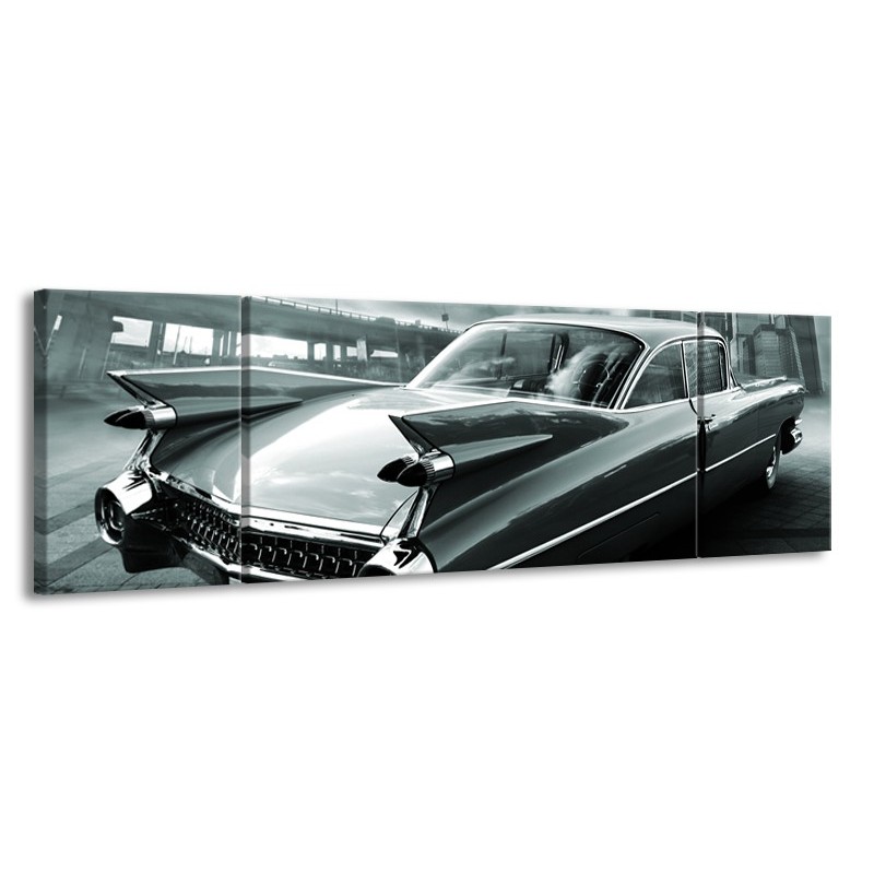 Glasschilderij Auto, Oldtimer | Zwart, Grijs, Groen | 170x50cm 3Luik
