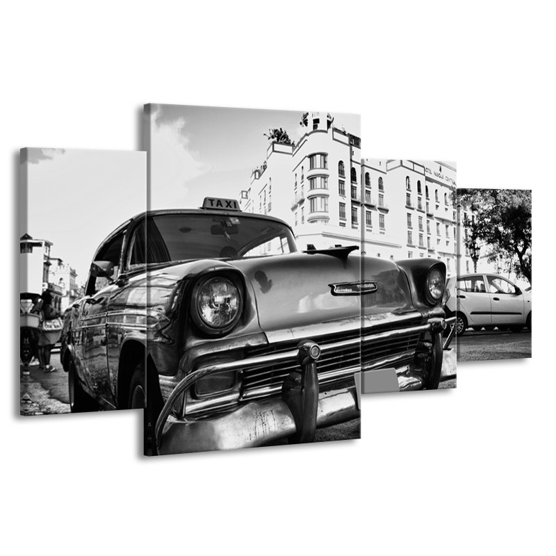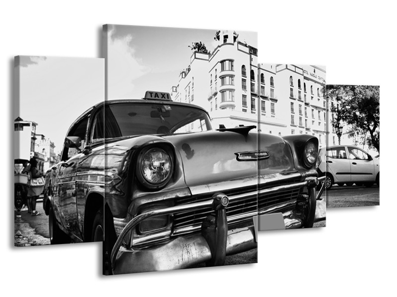 Glasschilderij Auto, Oldtimer | Zwart, Grijs, Wit | 160x90cm 4Luik