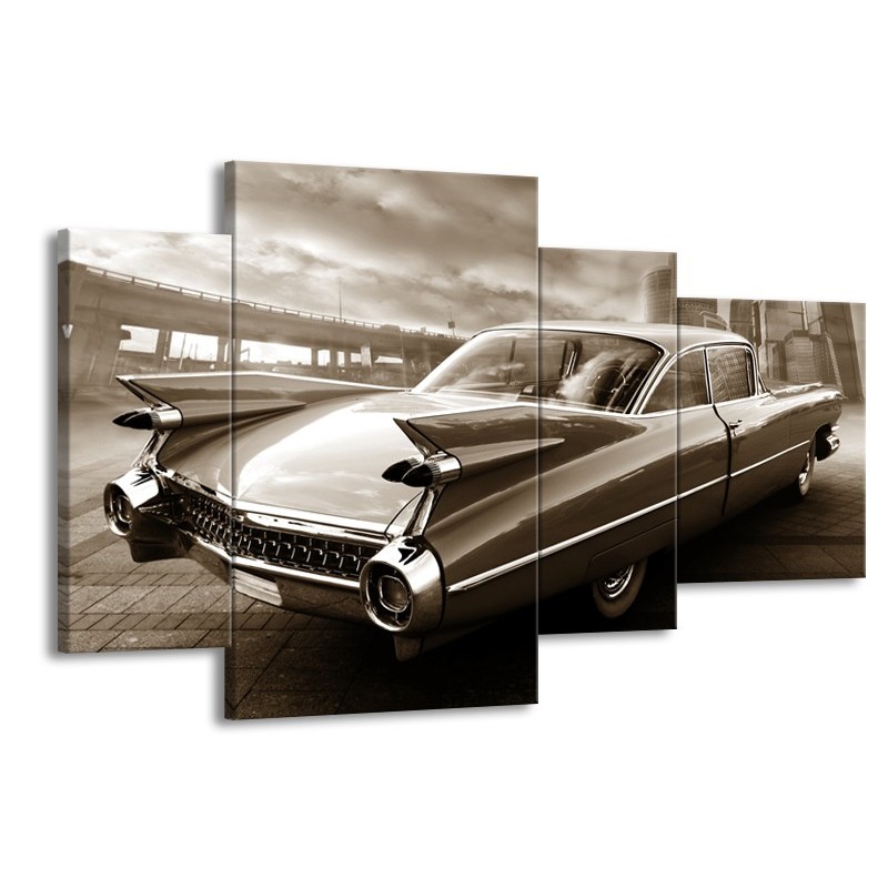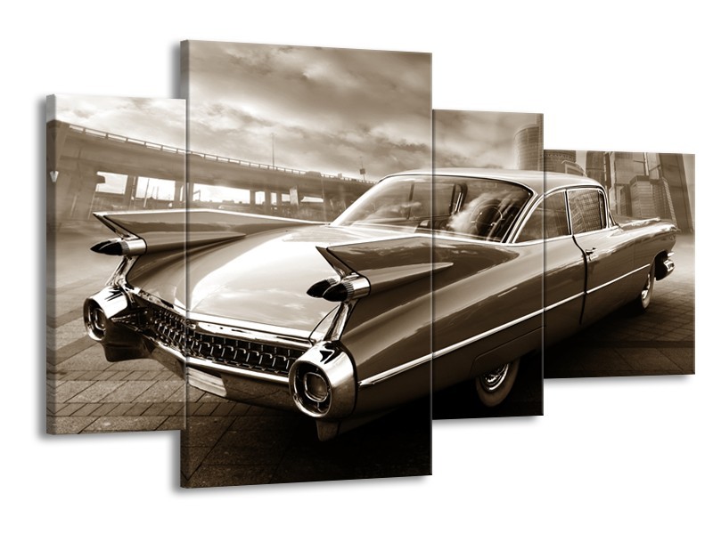 Glasschilderij Auto | Sepia | 120x75cm 4Luik