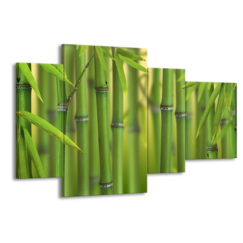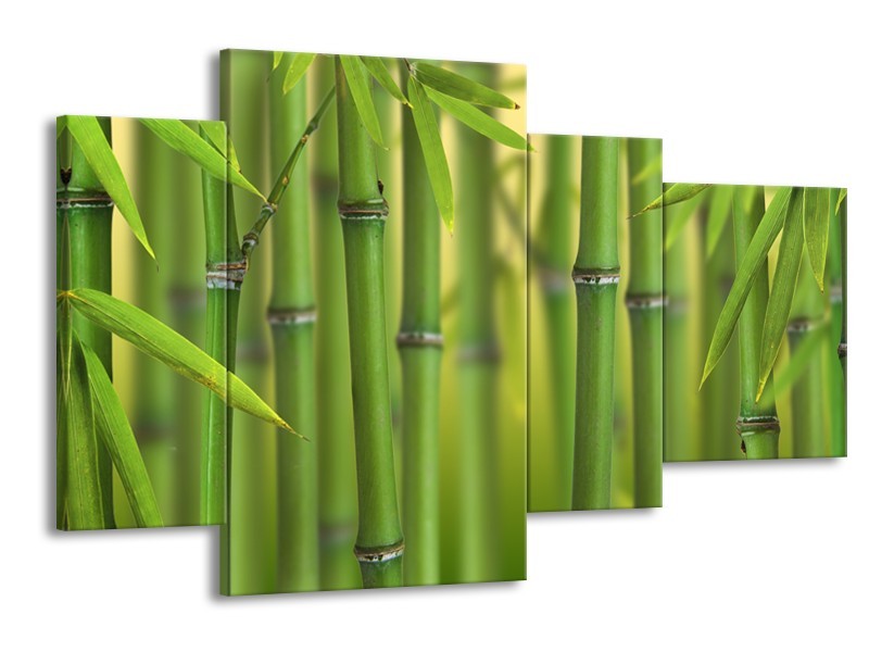 Glasschilderij Bambus, Natuur | Groen, Geel | 120x75cm 4Luik