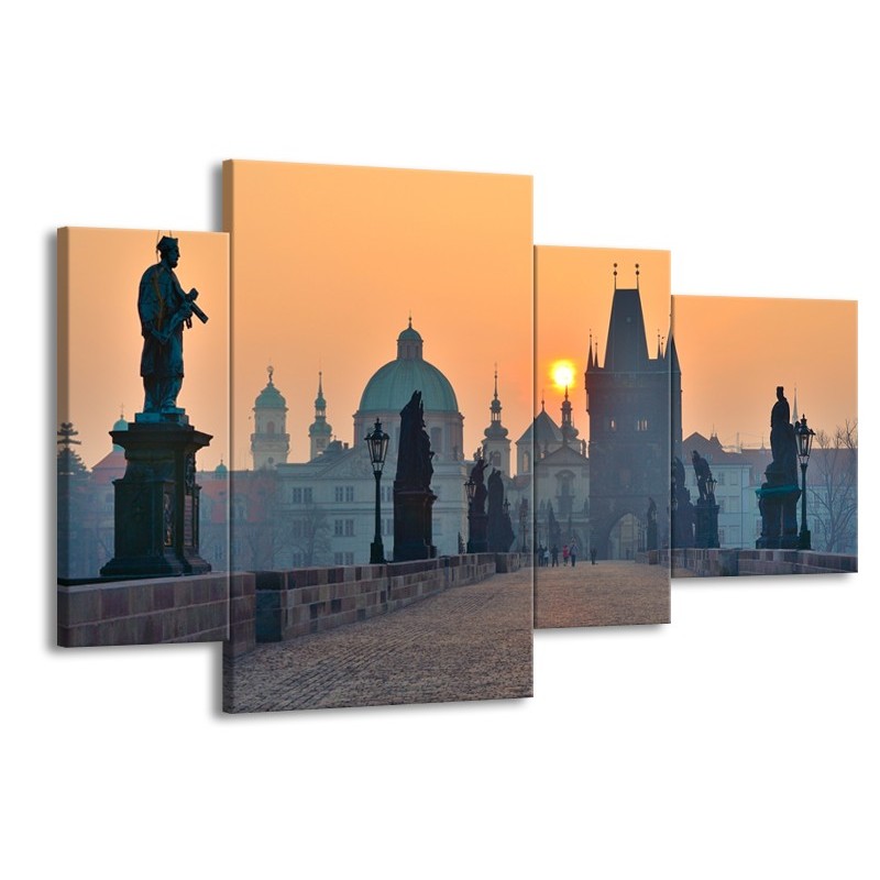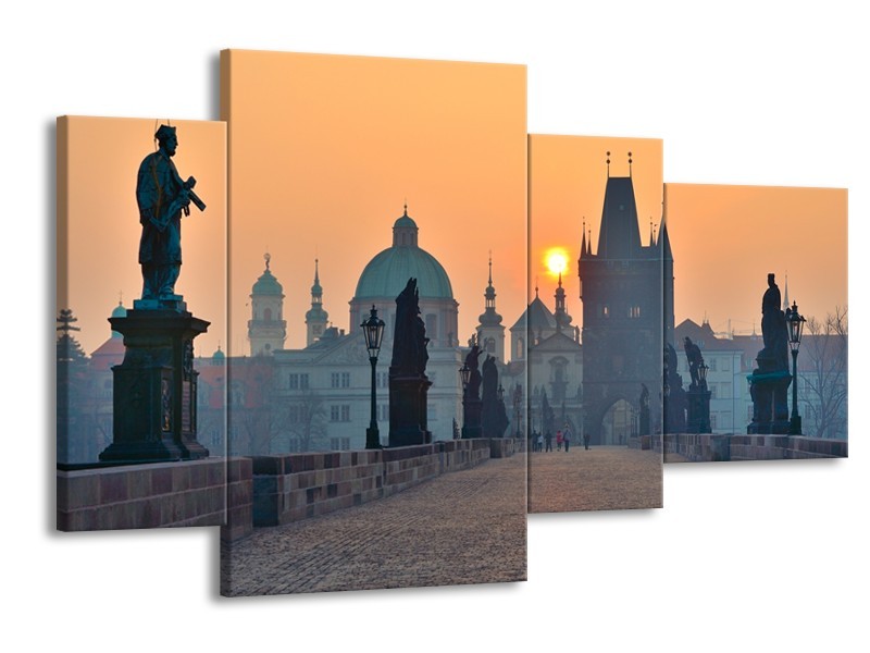 Glasschilderij Beeld, Steden | Geel, Grijs | 120x75cm 4Luik