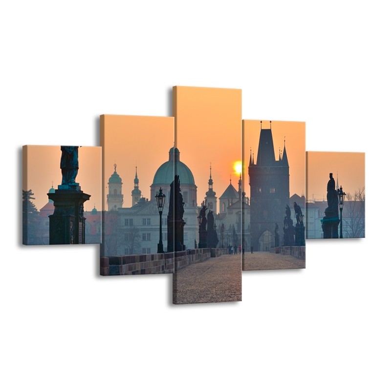 Glasschilderij Beeld, Steden | Geel, Grijs | 125x70cm 5Luik