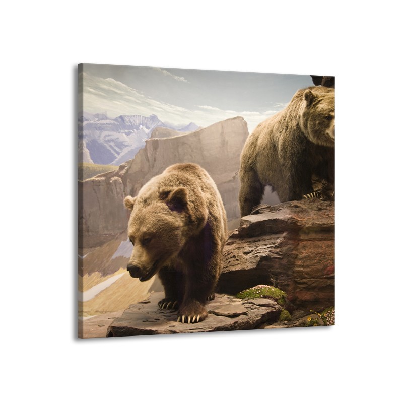 Glasschilderij Beer, Bergen | Bruin, Grijs | 70x70cm 1Luik