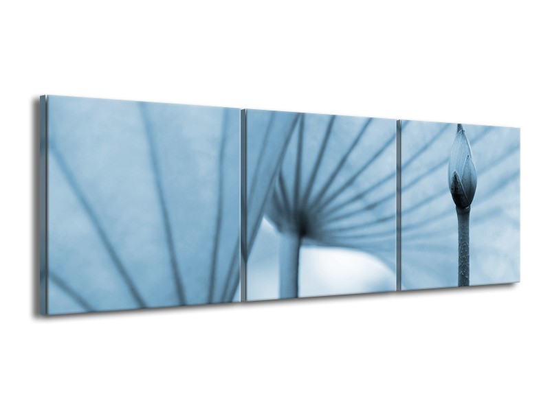 Glasschilderij Bloem | Blauw | 150x50cm 3Luik