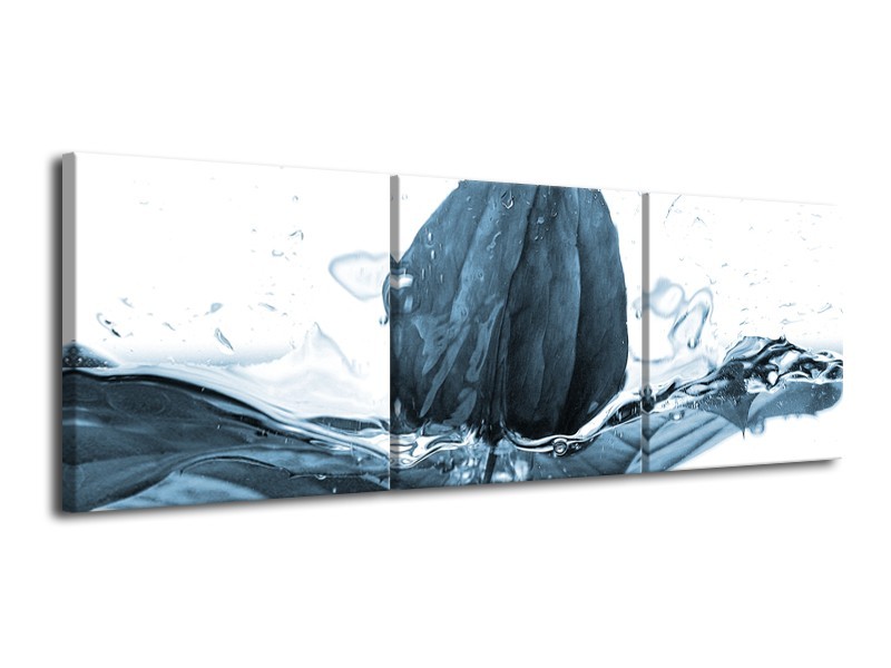Glasschilderij Bloem | Blauw, Wit | 120x40cm 3Luik