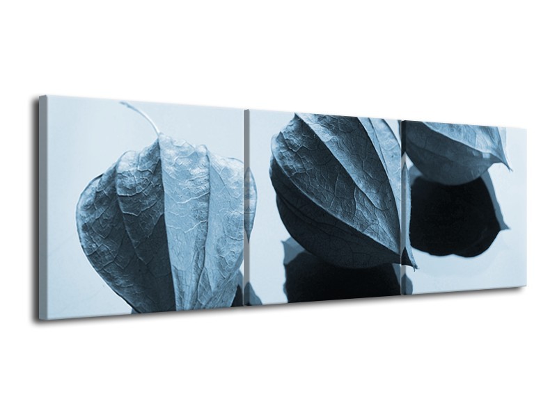 Glasschilderij Bloem | Blauw, Wit | 120x40cm 3Luik