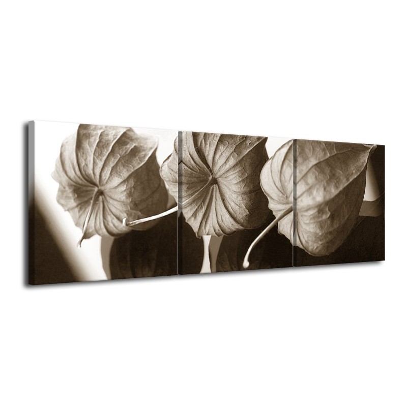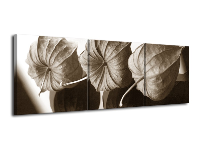 Glasschilderij Bloem | Crème , Sepia | 120x40cm 3Luik