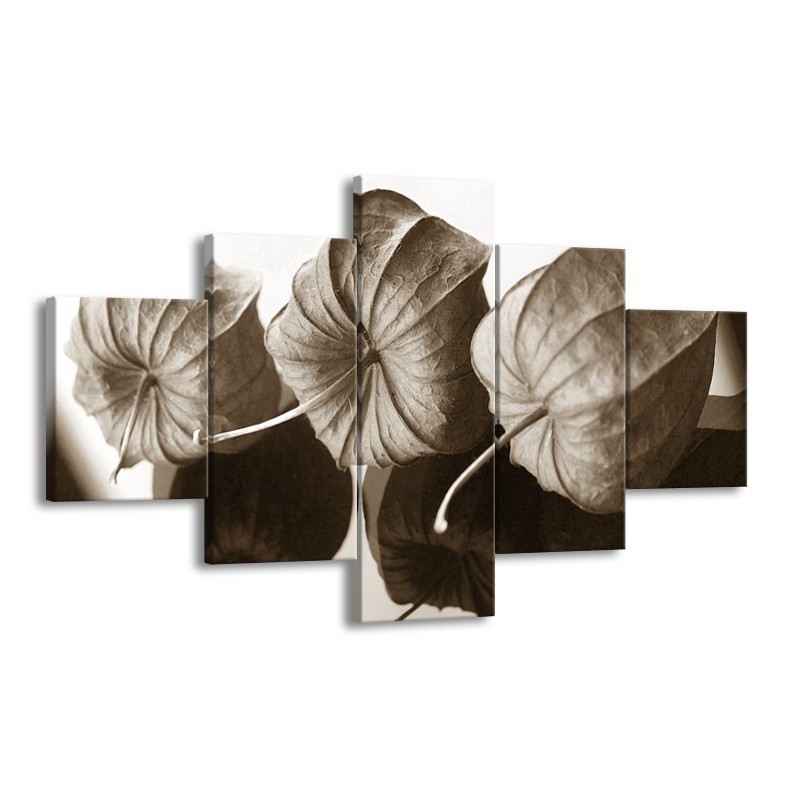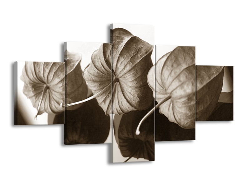 Glasschilderij Bloem | Crème , Sepia | 125x70cm 5Luik