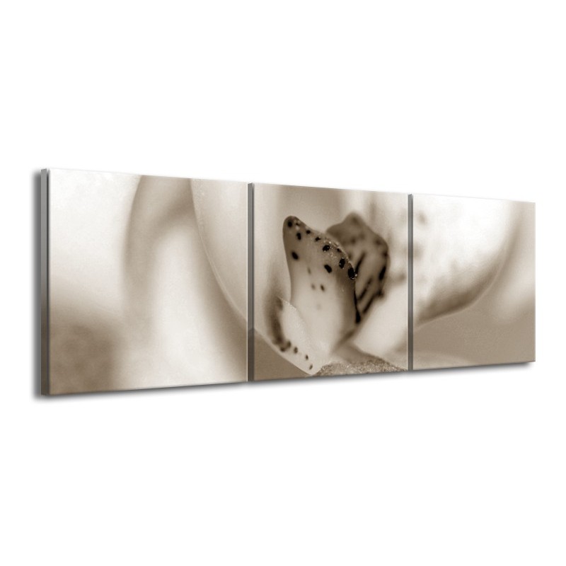 Glasschilderij Bloem | Crème , Sepia | 150x50cm 3Luik