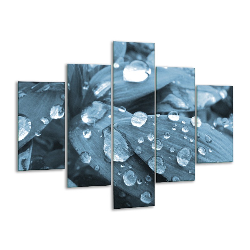 Glasschilderij Bloem, Druppel | Blauw, Grijs | 100x70cm 5Luik
