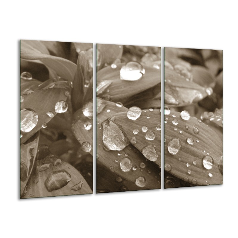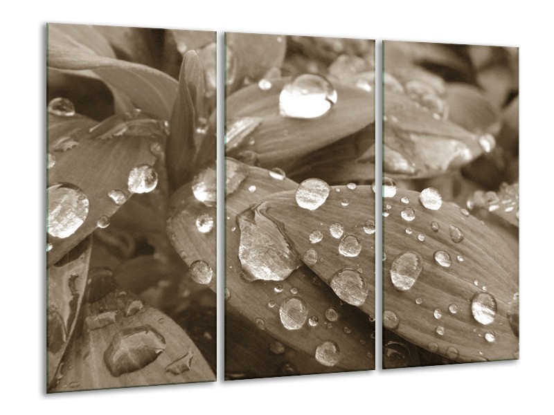 Glasschilderij Bloem, Druppel | Sepia | 120x80cm 3Luik