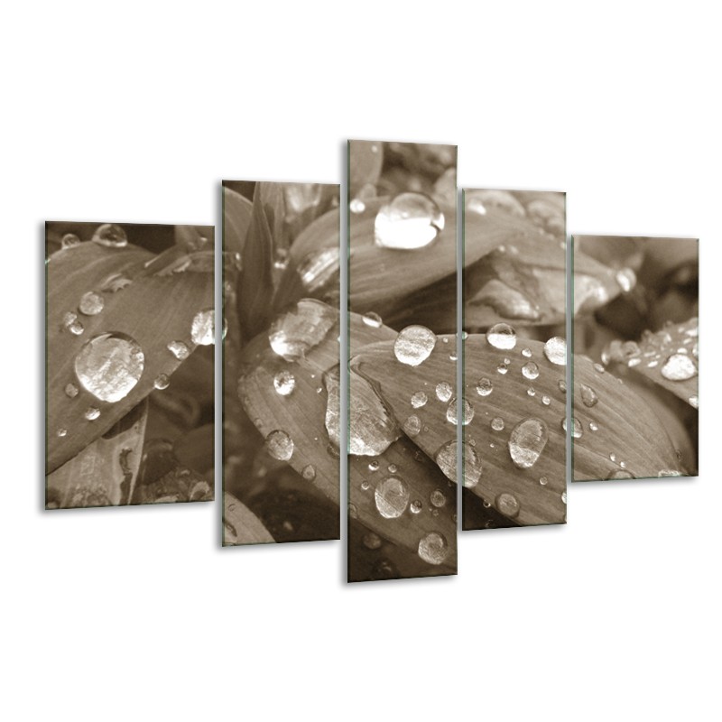 Glasschilderij Bloem, Druppel | Sepia | 170x100cm 5Luik