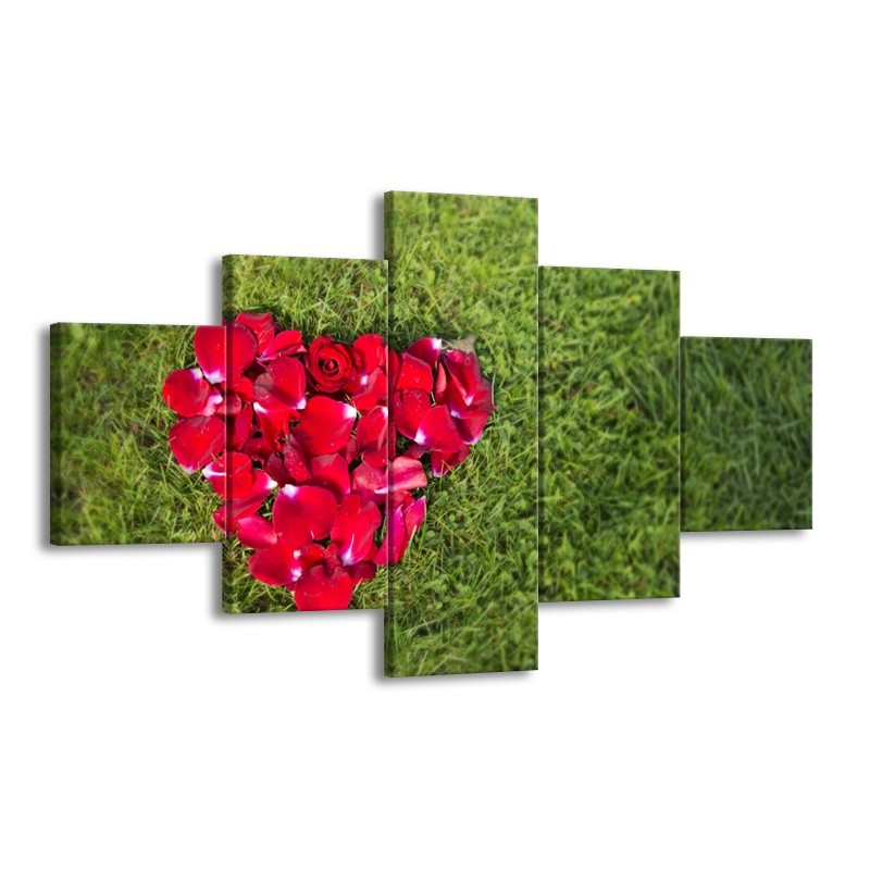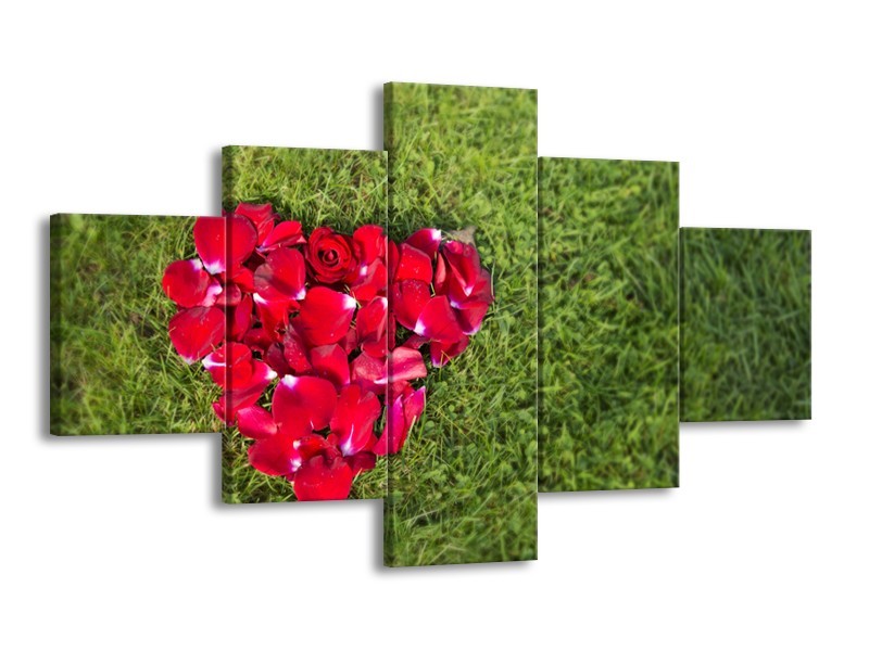 Glasschilderij Bloem, Gras | Rood, Groen, Roze | 125x70cm 5Luik