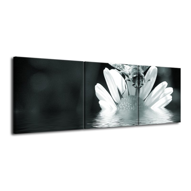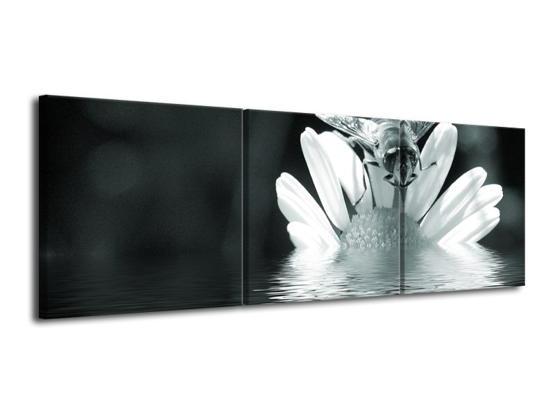 Glasschilderij Bloem | Grijs, Groen, Zwart | 120x40cm 3Luik