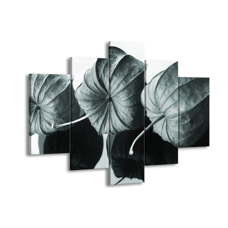 Glasschilderij Bloem | Grijs, Groen, Zwart | 150x105cm 5Luik