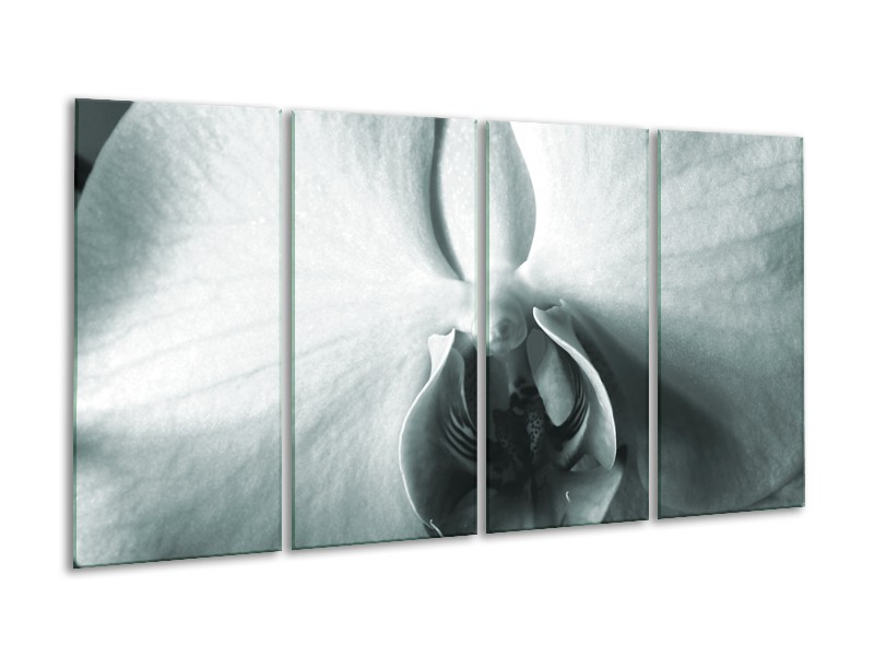 Glasschilderij Bloem | Grijs, Wit, Groen | 160x80cm 4Luik