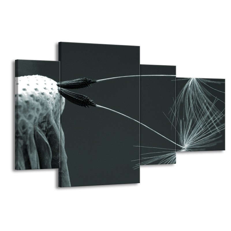 Glasschilderij Bloem | Grijs, Zwart, Groen | 120x75cm 4Luik