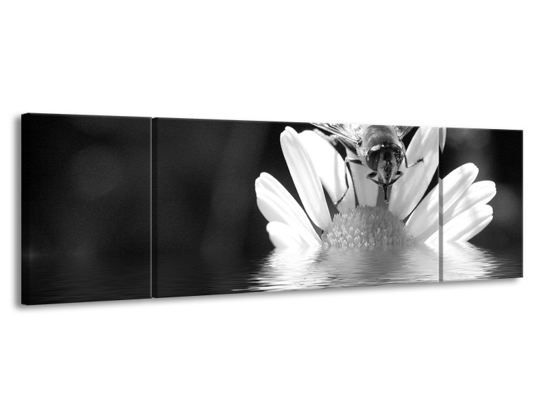 Glasschilderij Bloem | Grijs, Zwart, Wit | 170x50cm 3Luik