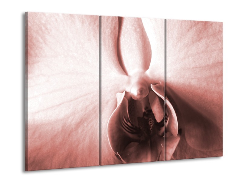 Glasschilderij Bloem | Rood, Crème , Bruin | 60x90cm 3Luik