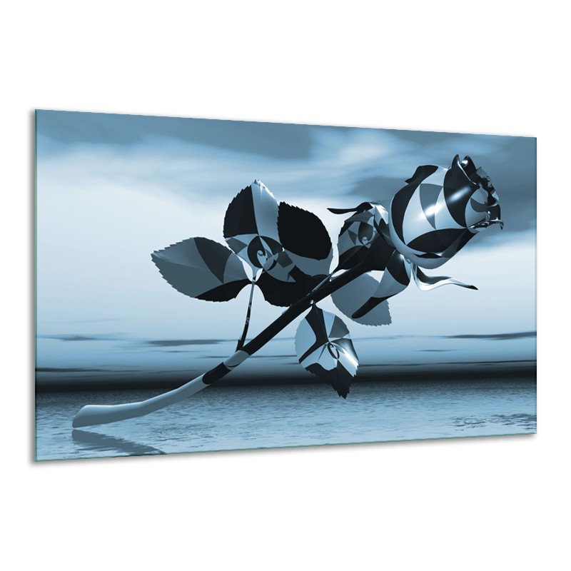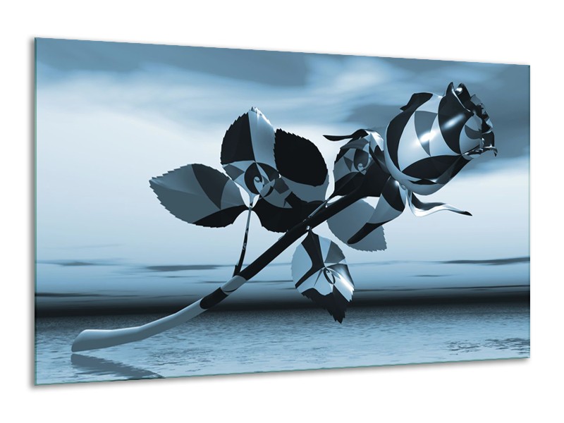 Glasschilderij Bloem, Roos | Blauw, Zilver | 120x70cm 1Luik