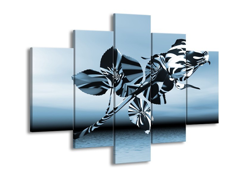 Glasschilderij Bloem, Roos | Blauw, Zilver | 150x105cm 5Luik