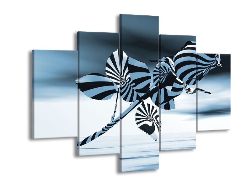Glasschilderij Bloem, Roos | Blauw, Zilver | 150x105cm 5Luik