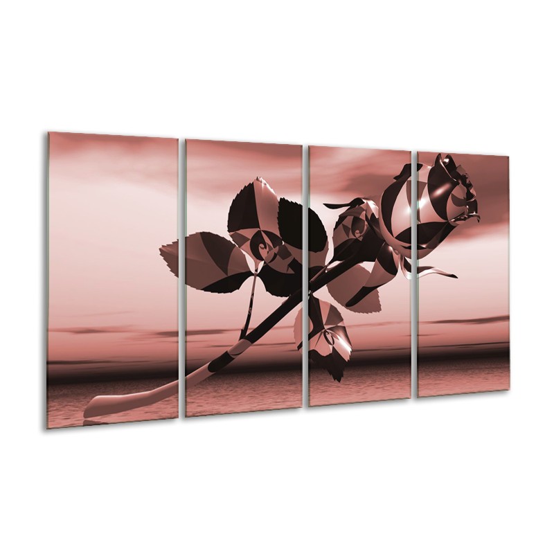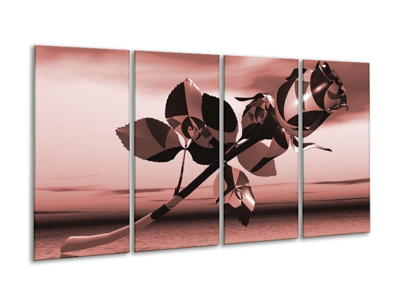 Glasschilderij Bloem, Roos | Bruin, Rood | 160x80cm 4Luik