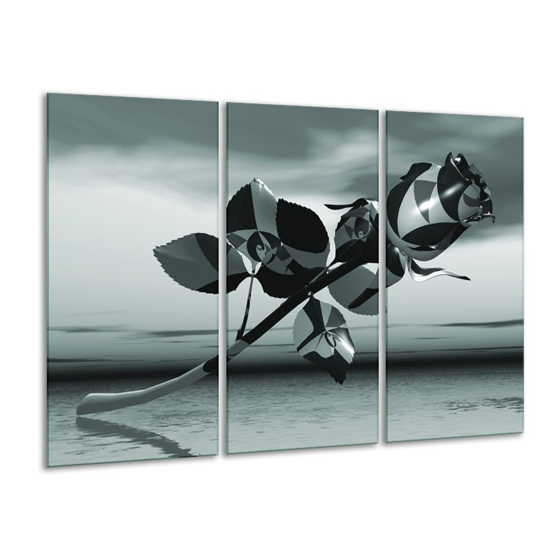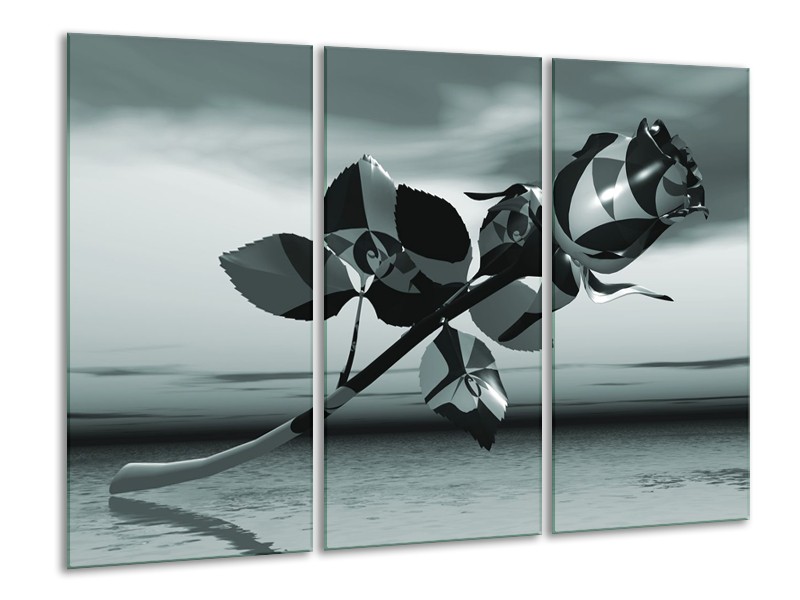 Glasschilderij Bloem, Roos | Grijs, | 120x80cm 3Luik