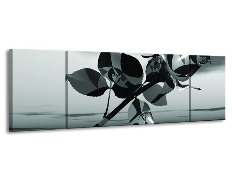 Glasschilderij Bloem, Roos | Grijs, | 170x50cm 3Luik