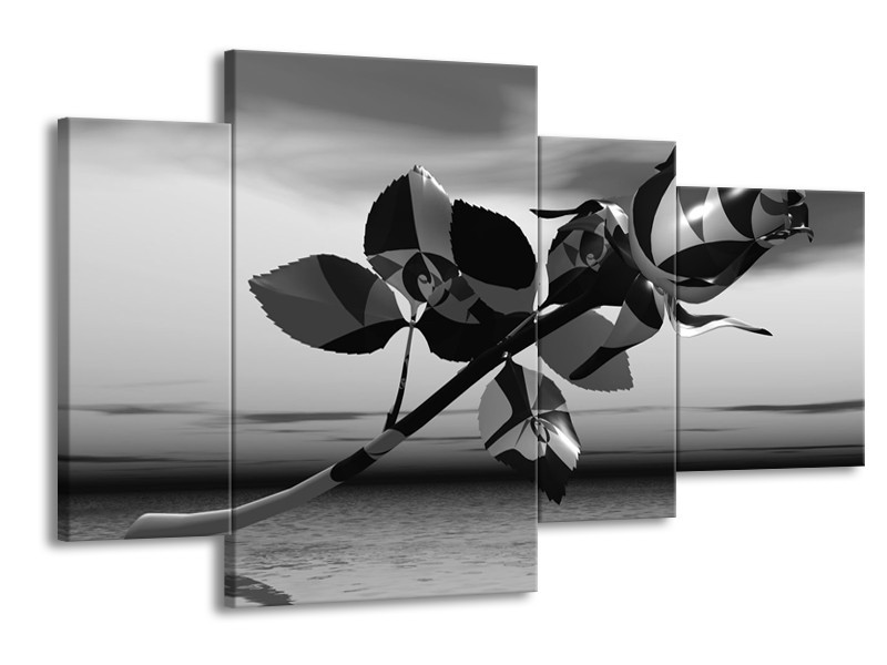 Glasschilderij Bloem, Roos | Grijs, Zwart | 120x75cm 4Luik