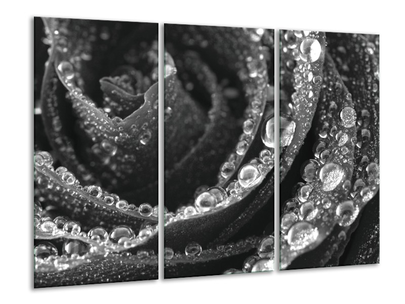 Glasschilderij Bloem, Roos | Grijs, Zwart | 120x80cm 3Luik