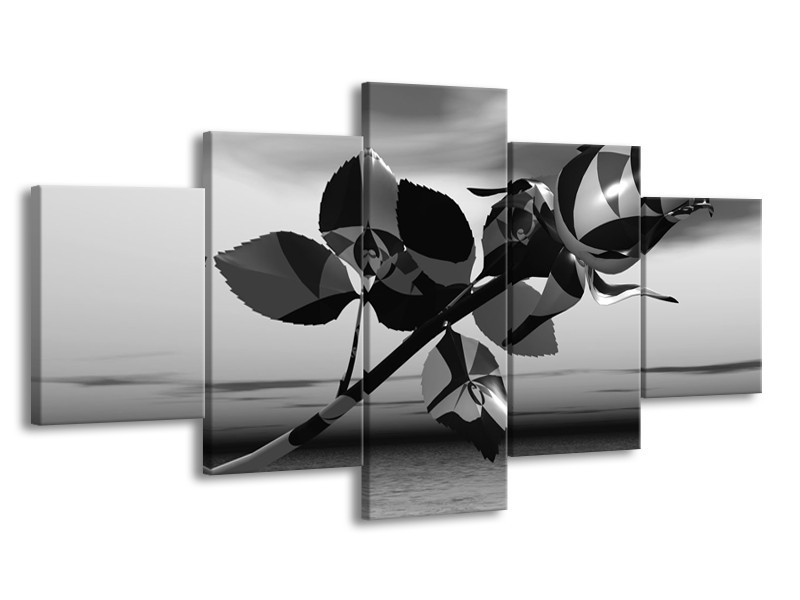 Glasschilderij Bloem, Roos | Grijs, Zwart | 150x80cm 5Luik