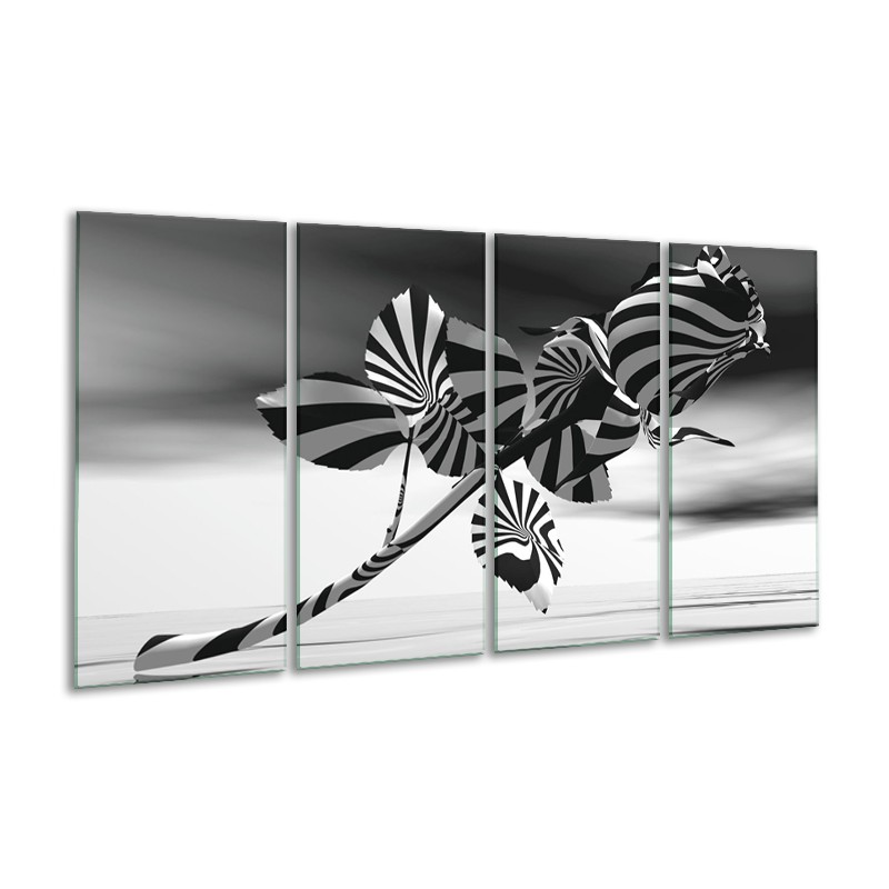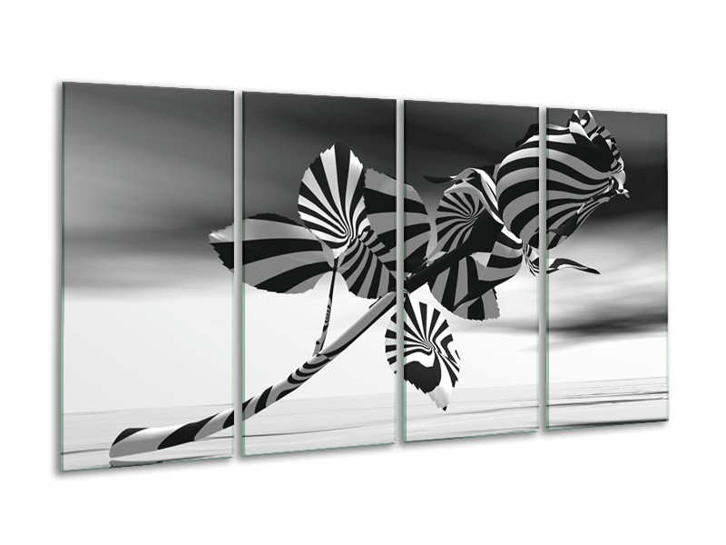 Glasschilderij Bloem, Roos | Grijs, Zwart | 160x80cm 4Luik