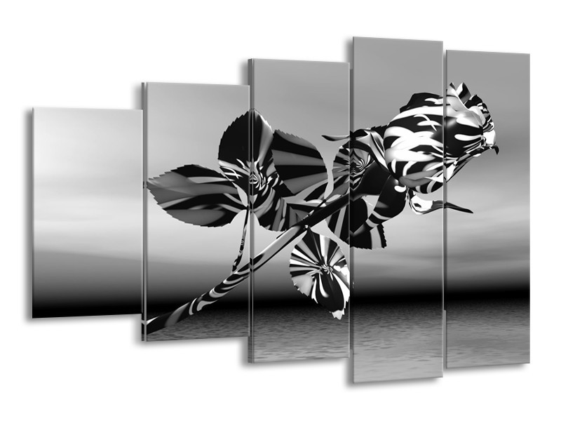 Glasschilderij Bloem, Roos | Grijs Zwart, Wit | 150x100cm 5Luik