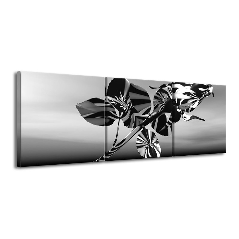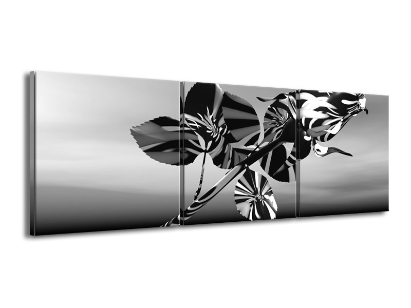 Glasschilderij Bloem, Roos | Grijs Zwart, Wit | 150x50cm 3Luik