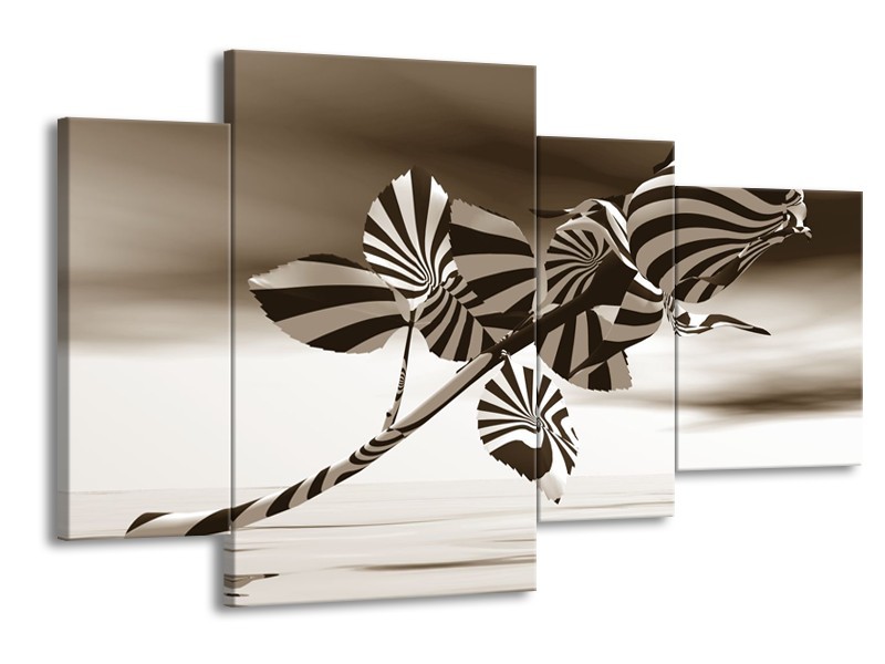 Glasschilderij Bloem, Roos | Sepia | 120x75cm 4Luik