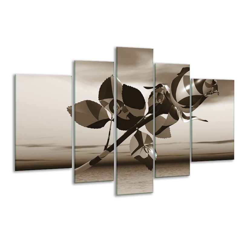 Glasschilderij Bloem, Roos | Sepia | 170x100cm 5Luik