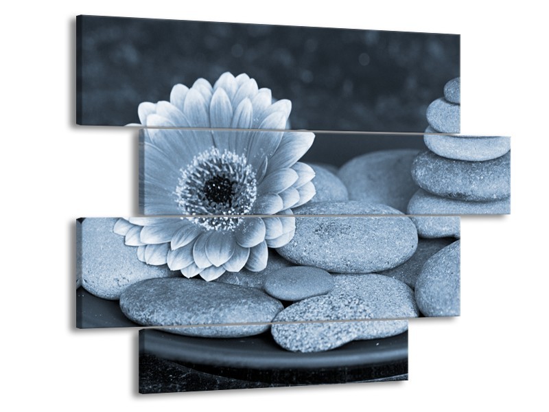 Glasschilderij Bloem, Stenen | Blauw, Grijs | 115x85cm 4Luik