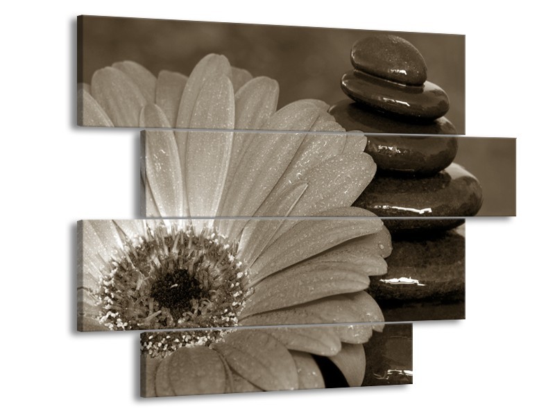 Glasschilderij Bloem, Stenen | Sepia | 115x85cm 4Luik