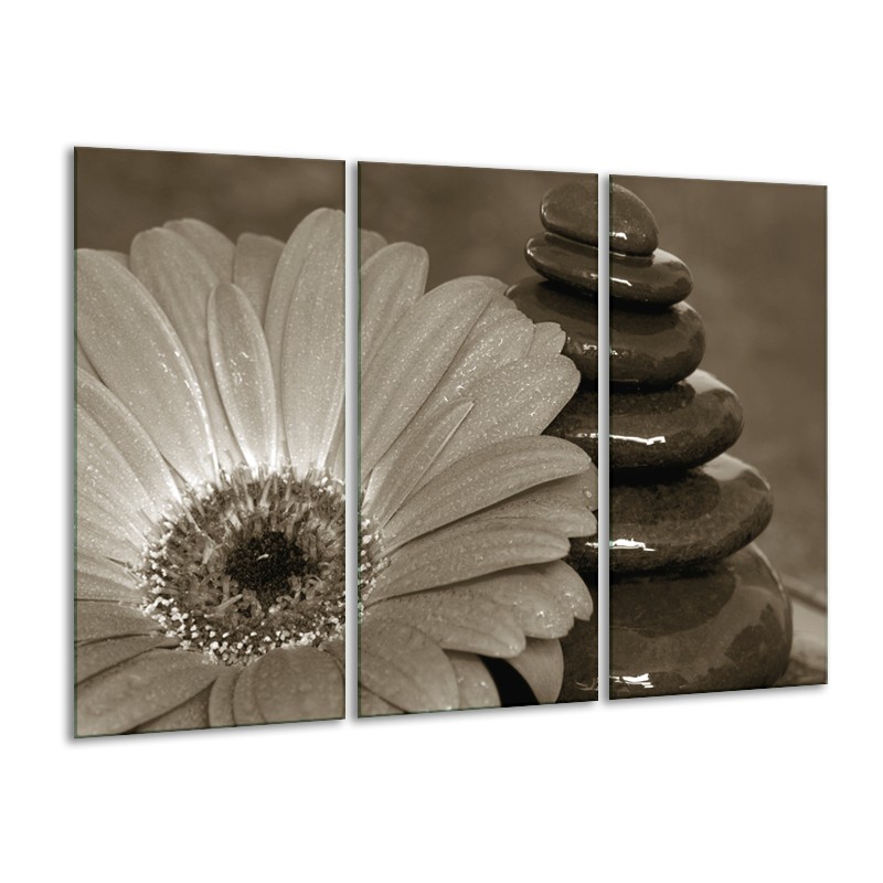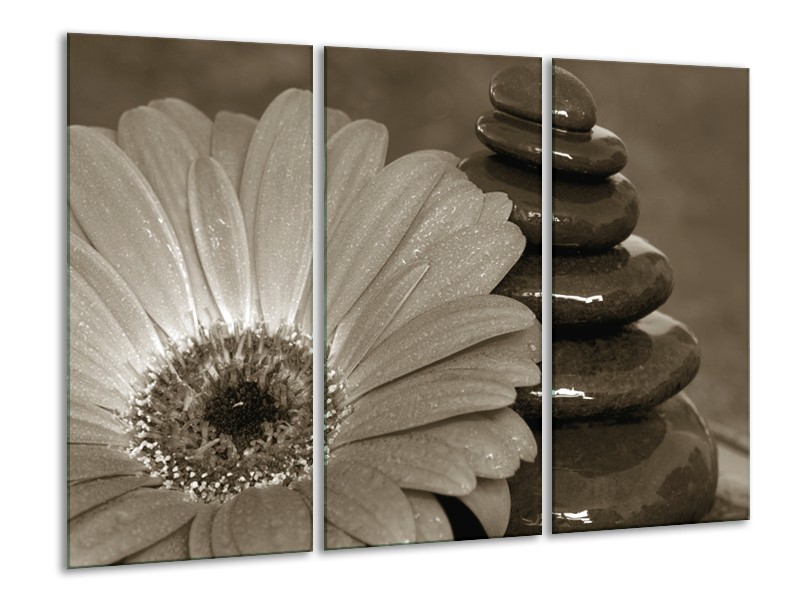 Glasschilderij Bloem, Stenen | Sepia | 120x80cm 3Luik