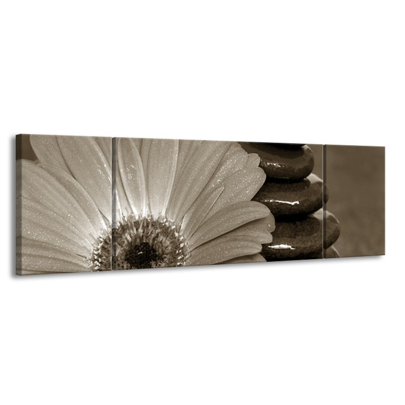 Glasschilderij Bloem, Stenen | Sepia | 170x50cm 3Luik